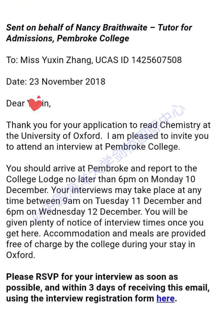 张同学在收到英国名校帝国理工面试之后又收到了牛津大学的面试通知,这真是令人激动人心的时刻,她在学习A-Level的过程中,有着自己独特的学习方式,能够积极的发现学习中的问题并解决问题,使自己不断的提高,不断的进步。能够踏踏实实的走好学习过程中的每一步,苦心人,天不负,牛津大学面试通知是对其努力最大的回报。