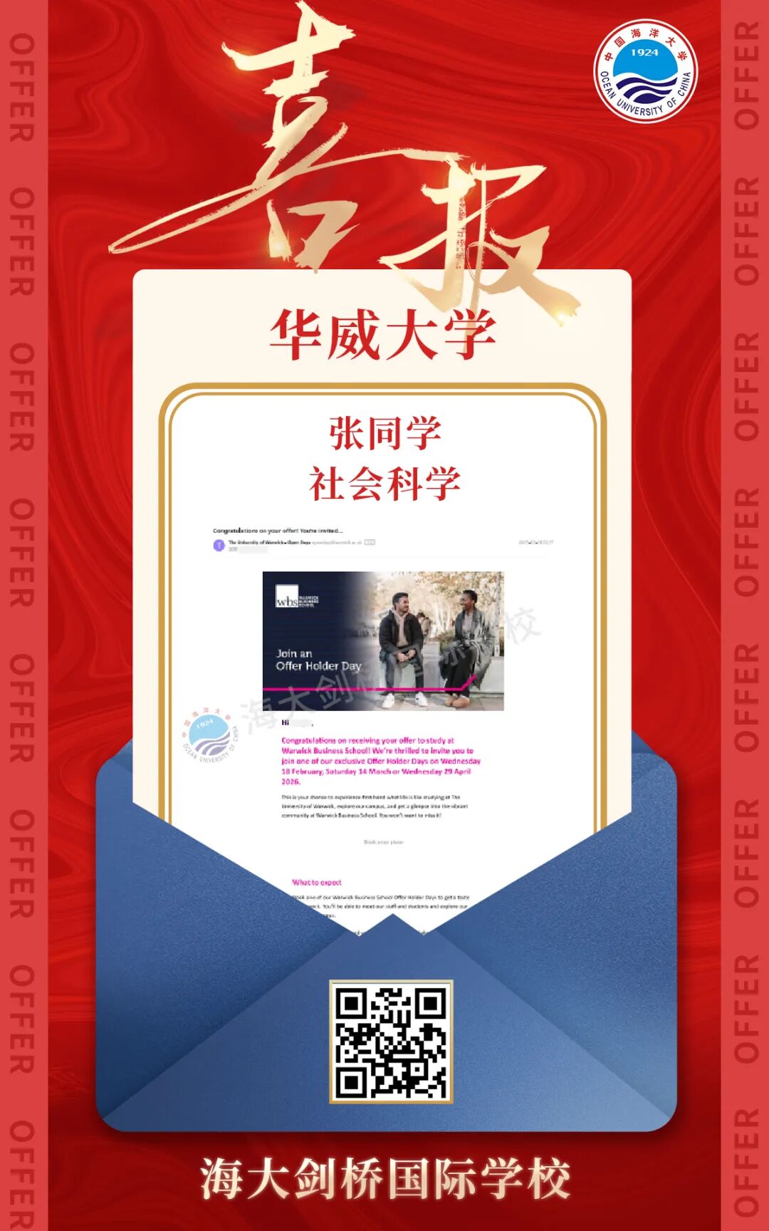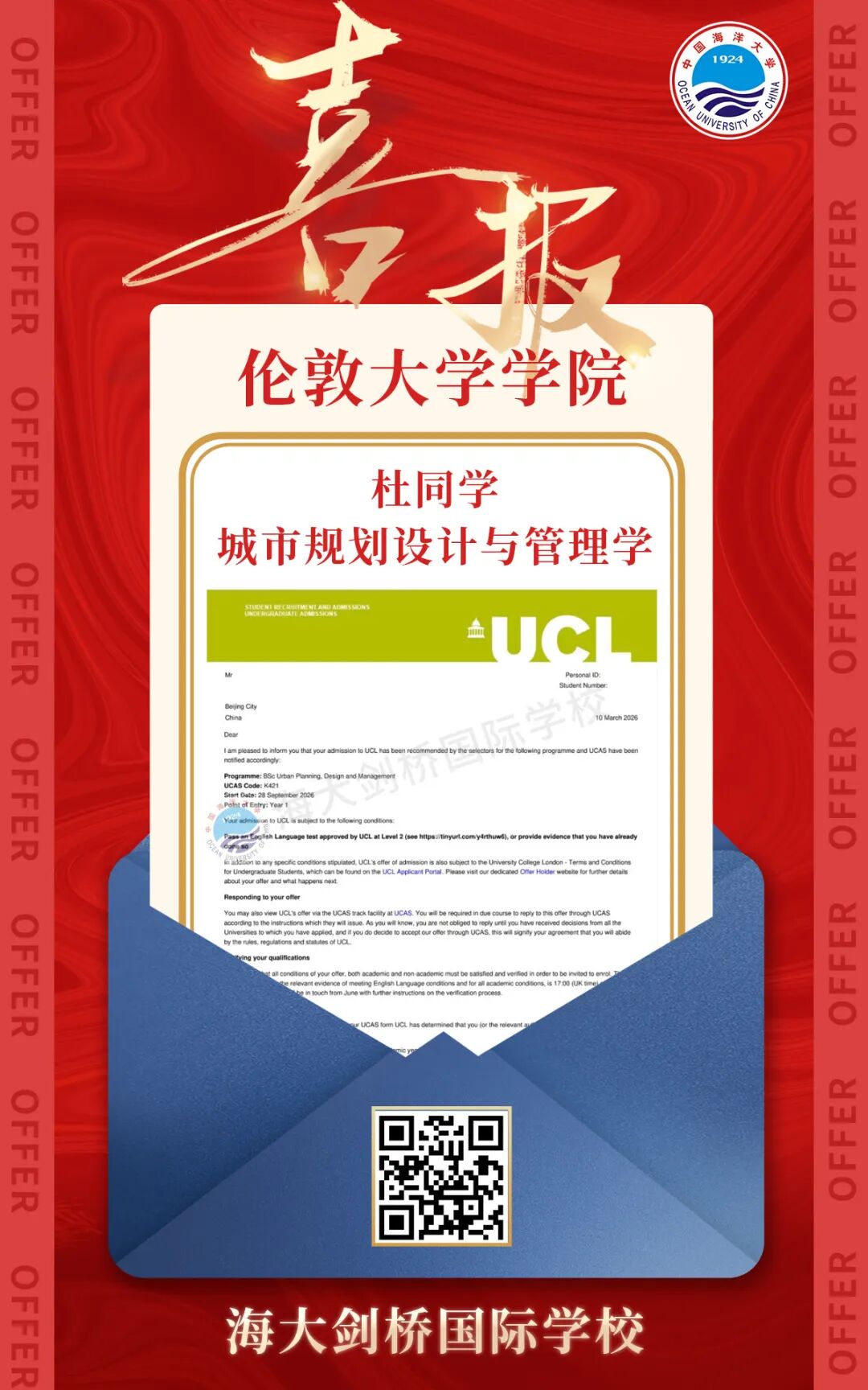 喜获伦敦大学学院、曼彻斯特大学、悉尼大学、伦敦国王学院、华威大学offer!